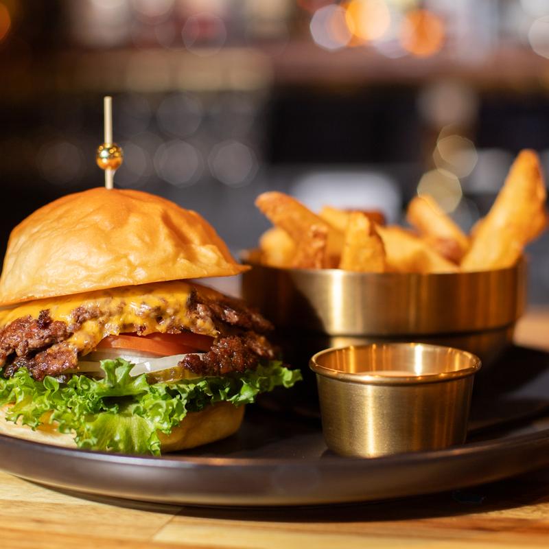 Our house blend of beef uses whole primal beef cuts, steak cuts and a touch of smokey bacon. Served smashburger style on a Hokkaido milk bun that is baked in house. Enjoy a soft and pillowy bun filled with crispy, juicy beef!
